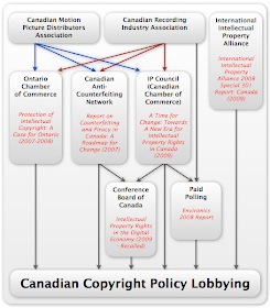 Michael Geist has a thorough and excellent analysis today of the role of CRIA and CMPDA in copyright "policy laundering", as he calls it, in Canada - including in the recent Conference Board imbroglio. I had raised some questions about these two organizations in this context on June 17, 2009.